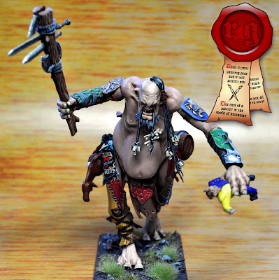 Painting of this monster was not a piece of cake. Its skin was redone completely after many layers of airbrushing. You need to know that this model is HUUGE. It tops 14cm and the Giant itself is 120mm from heel to the top of its head! I was painting it in parts that were bigger than most of my other complete models! It could have been better, but it is not the worst :)
